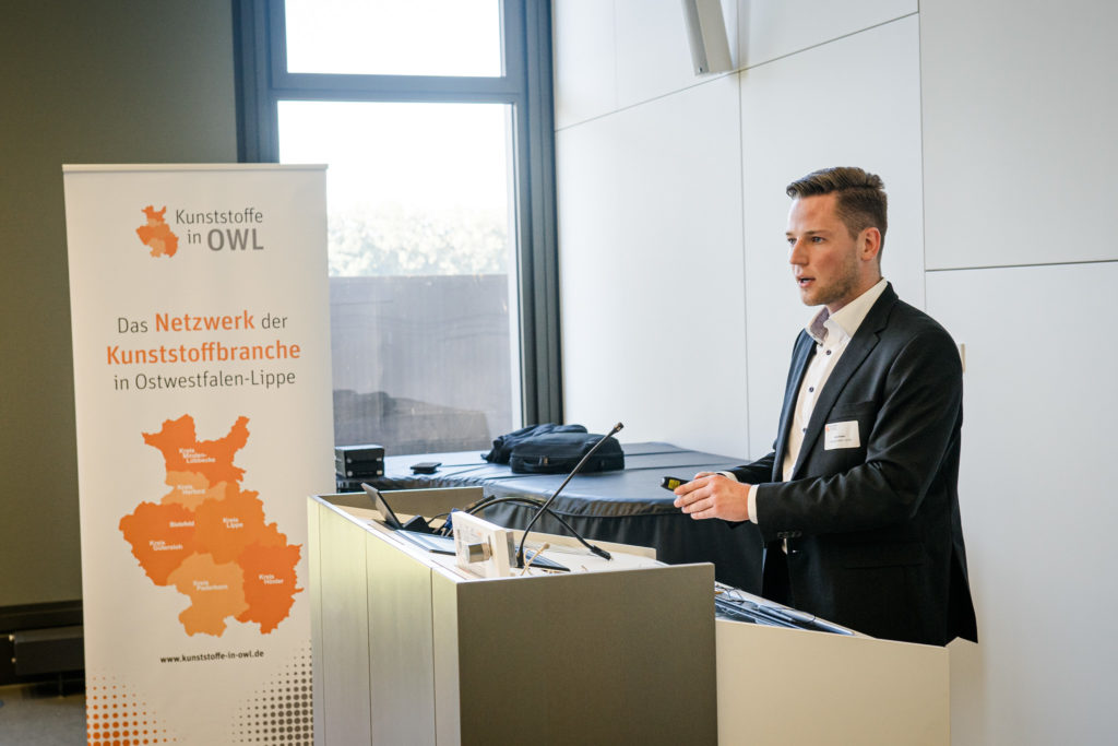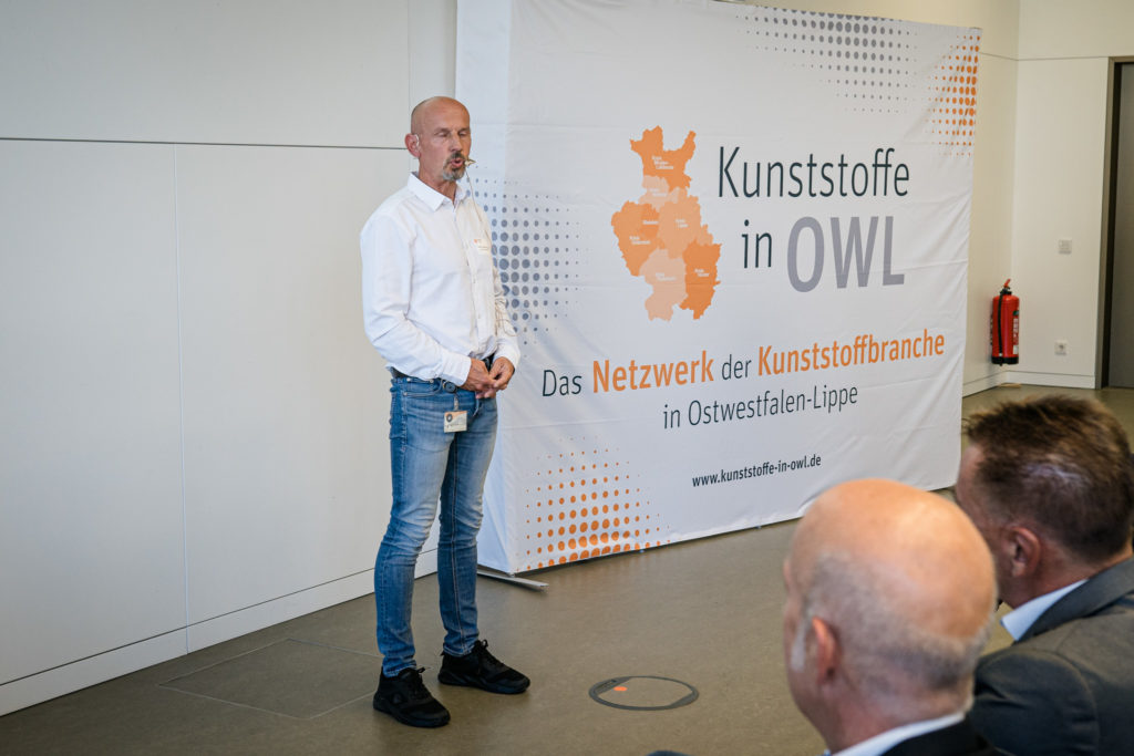 Danach sprach Carsten Kießler, Vorstandsvorsitzender von Kunststoffe in OWL e.V. einige Worte zur Begrüßung und ging auf die steigende Mitgliederzahl des Vereins und die wirtschaftliche Situation der Kunststoffindustrie in OWL ein.