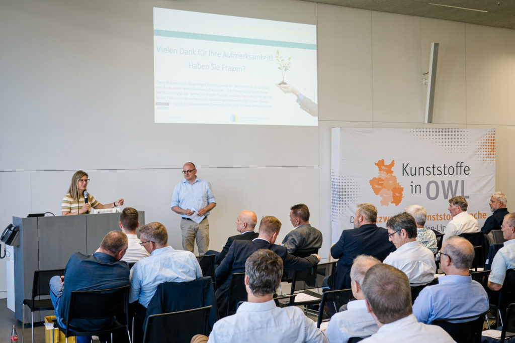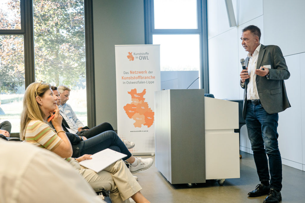 Die Veranstaltung in Präsenz war ideal zum Netzwerken und Kontakte knüpfen – insbesondere als Kunststoffe in OWL e.V. im Anschluss alle Teilnehmenden zum Imbiss einlud.