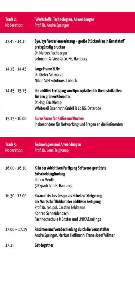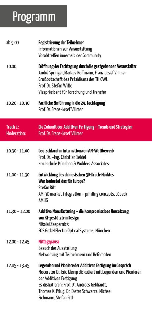 Die diesjährigen Veranstalter – Professor Dr. Franz-Josef Villmer, Professor Dr. André Springer und Markus Hoffmann – zeigten sich begeistert von der Resonanz und gaben bereits einen Ausblick auf das kommende Jahr: Die 30. Fachtagung wird als Jubiläumsveranstaltung erneut Akzente setzen und die 3D-Druck-Community nach Lemgo einladen.